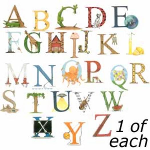 Wallpaper cutouts have 1 each of the letters of the alphabet.