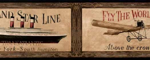 Antique Airplane and Ship Wallpaper Border AW0590B York