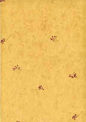Wallpaper features burgundy berries on a tan background.