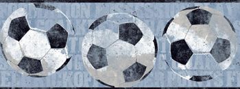 This Boys Will Be Boys%uFFFD Blue Soccer Ball Wallpaper Border has soccer balls rolling across a backdrop of typeset sports terms on plaster texture bring this popular sport front and center with a palette blue. This 9 border has more graphic and a touch more sophisticated than most sports borders, is perfect for teenage or older soccer enthusiasts in game rooms or bedrooms and finds a perfect compliment in pattern Plaster Texture for a designer look. Made in the USA.