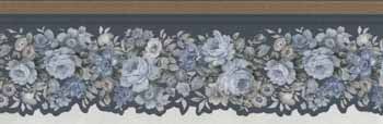 Enjoy the elegance of this Die Cut Flower Wallpaper Border. The silk and satin texture will light up any area in your home. The roses are colored in different tones of blue with a hint of green on the leaves. The top trim is blue with a band of gold that has a scrolling leaf pattern going through it. The bottom edge is scalloped giving your wall a unique look when this border is hung. Give the added richness to your room when hanging this Die Cut Golden Flower Wallpaper Border.