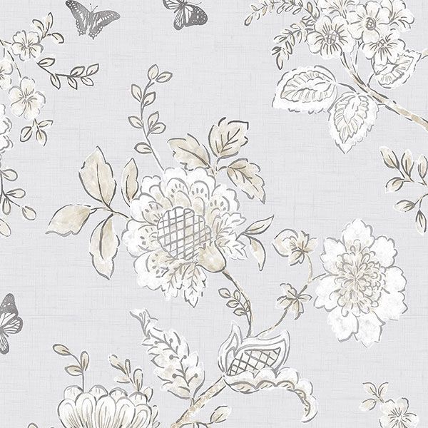 Butterfly Toile Wallpaper Grey, Beige, Dove Norwall Wallcovering FH37538
