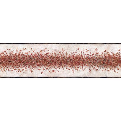 Bright and natural, this garland of red and orange berries on stems of brown makes a colorful organic decoration to a rural home or an urban dwelling with a country flavor. Select from a warm or cool mottled background. Use this six border with Cabin Boards or Plaster Texture wallcovering for an inviting rustic look. Made in the USA.